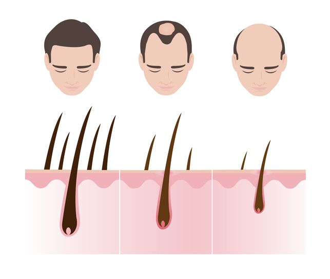 睪固酮dht會與毛囊細胞結合,特別是頭頂和前額這些對 DHT 較為敏感的毛囊,導致毛囊逐漸萎縮,生長出來的頭髮也越來越細、越來越短,最終毛囊已經萎縮,停止頭髮生長。這就是為什麼有地中海禿頭的人通常從髮際線和頭頂開始禿頭,而後枕部的頭髮則能長期保持健康毛囊的狀態。