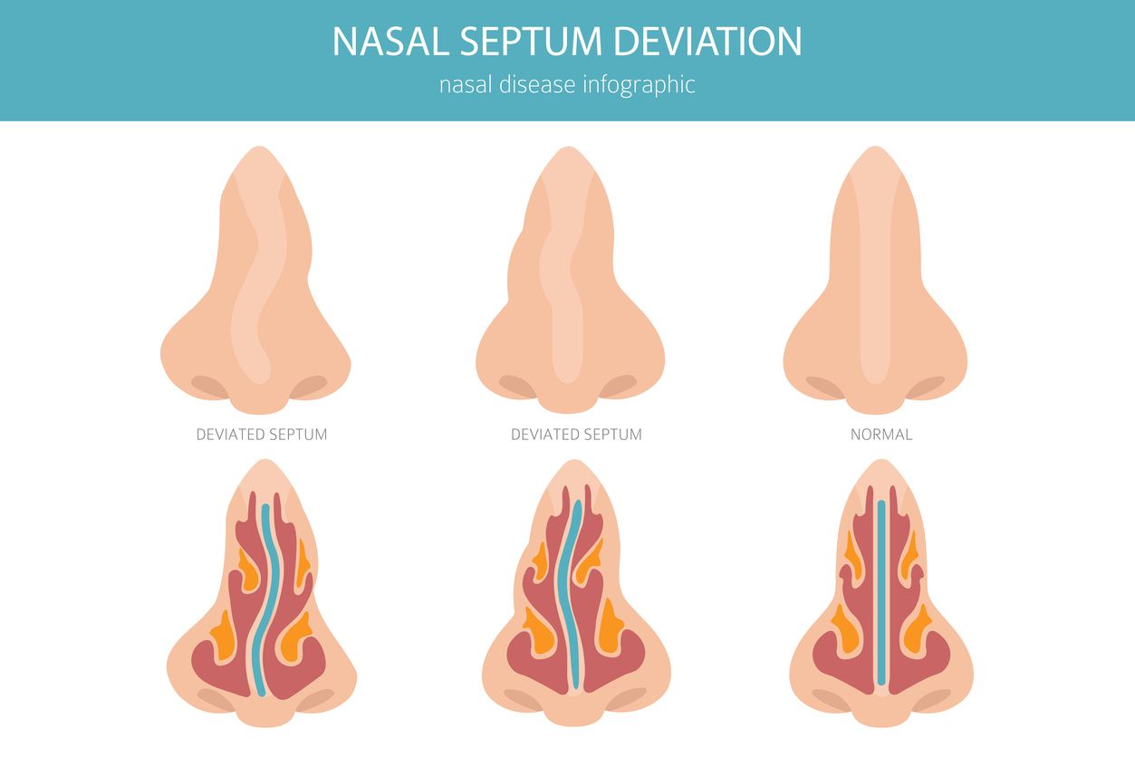 鼻中隔是分隔左右鼻孔的牆壁,由軟骨與骨頭共同構成。理想情況下,這面牆應位於鼻腔中央。當這面牆向一側傾斜、彎曲或出現骨刺突起時,便稱為鼻中隔偏曲,這會導致鼻腔通道不對稱,進而引發一系列呼吸問題。