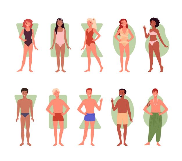 在制定減肥計劃之前,必須先了解自己的體型歸類。每種身型的脂肪分佈與肌肉比例都不同,這決定了你應該加強哪個部位的鍛鍊。除了擁有 S 曲線的葫蘆型(沙漏型)之外,以下是幾種常見的身形比例分析: