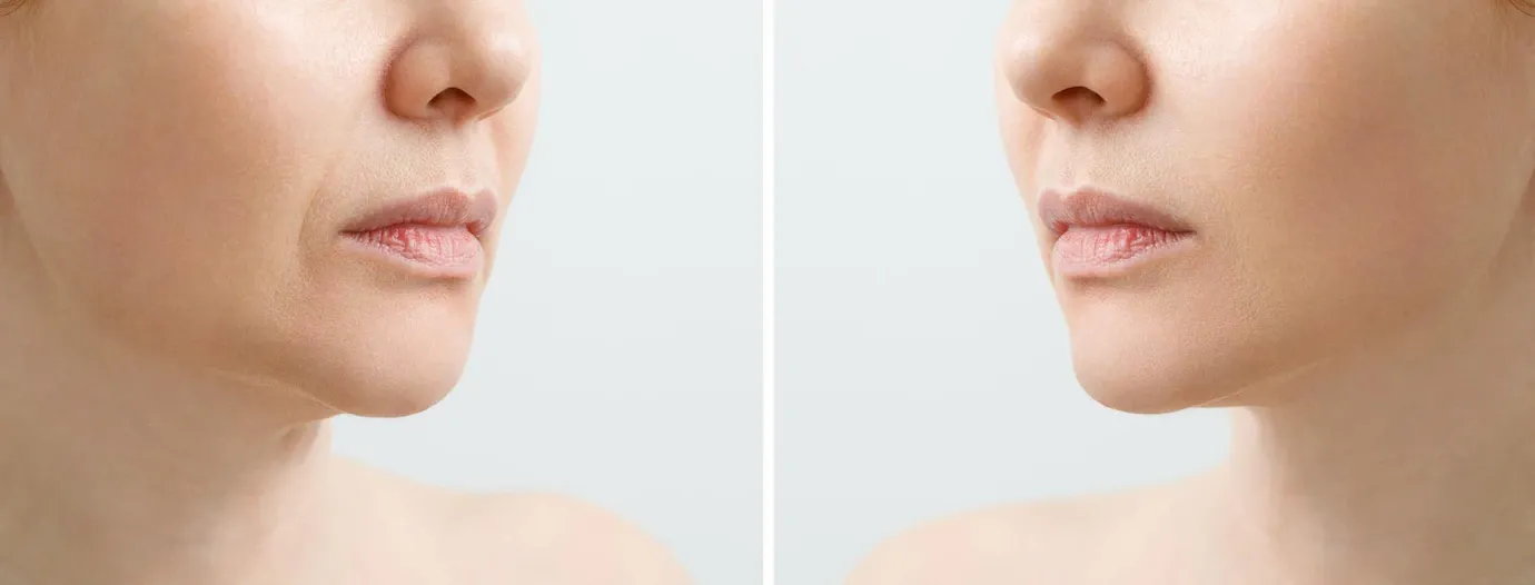 健康的年輕臉部線條應該呈現「倒三角形」,但隨著年齡增長導致的肌下垂,會讓這三角形發生倒置。原本支撐在中臉的澎潤脂肪下滑後,會堆積在下頜兩側,形成兩團凸出的嘴邊肉。這不僅讓側臉線條變得不再流暢,更會模糊原有的下顎輪廓,使整體臉部視覺感變大、變方。